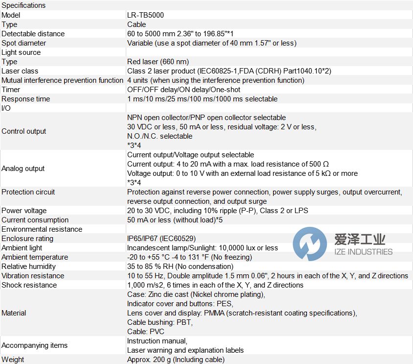 KEYENCE激光傳感器LR-TB5000規(guī)格描述